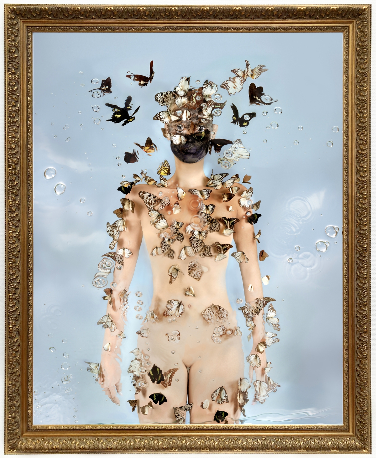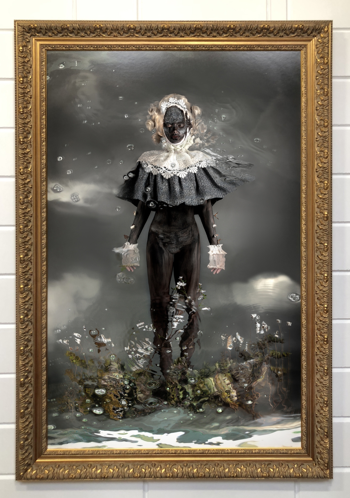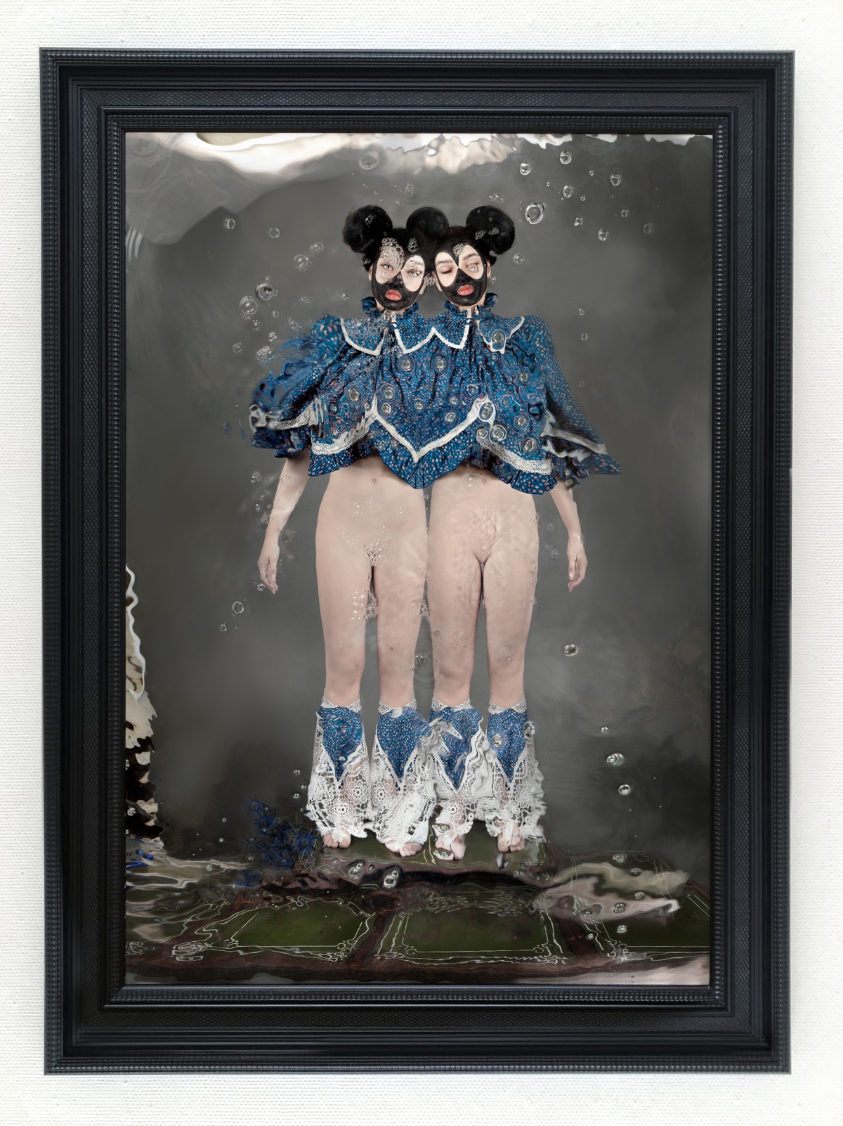 Al is het eindresultaat fysiek een tweedimensionale afbeelding, de weg die Dindi bewandelt is er een van vele lagen, als een schilder bouwt zij zo haar eigen wereld. Ze arrangeert alle facetten van het beeld: van het maken van kostuums, maskers en attributen tot het schminken van het model. Een ding heeft ze niet in de hand en dat is het water. Het water leert haar de controle los te laten.