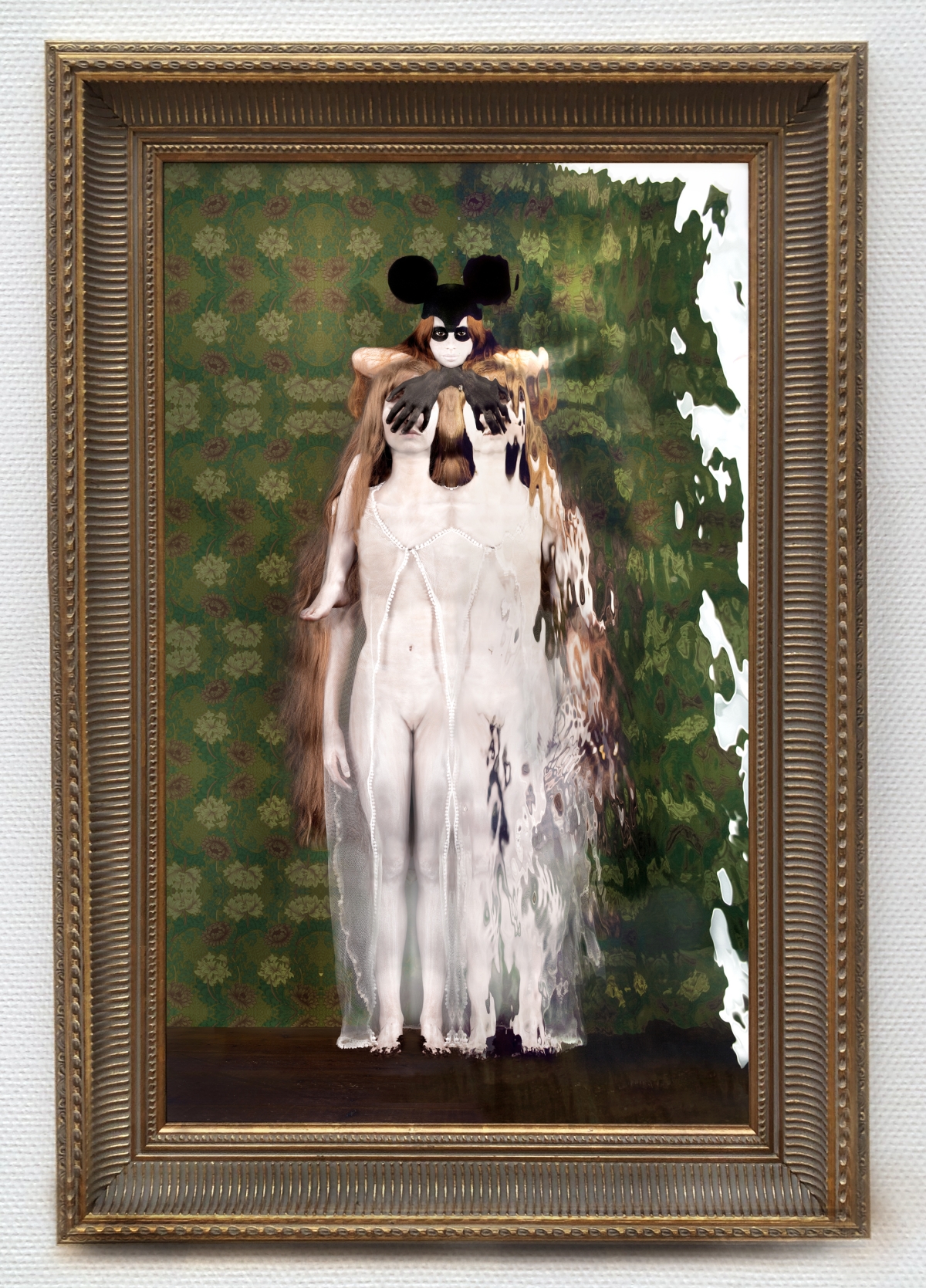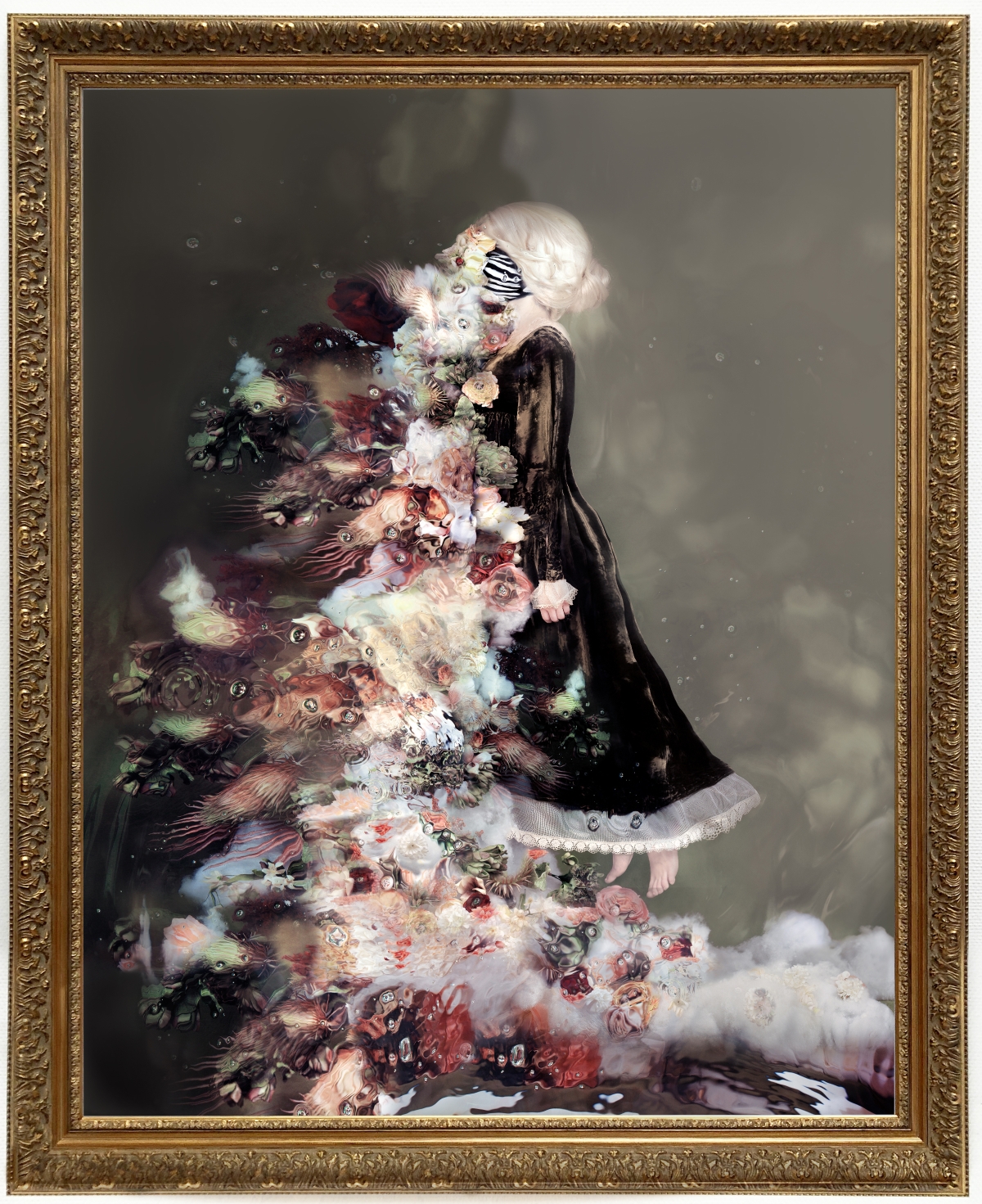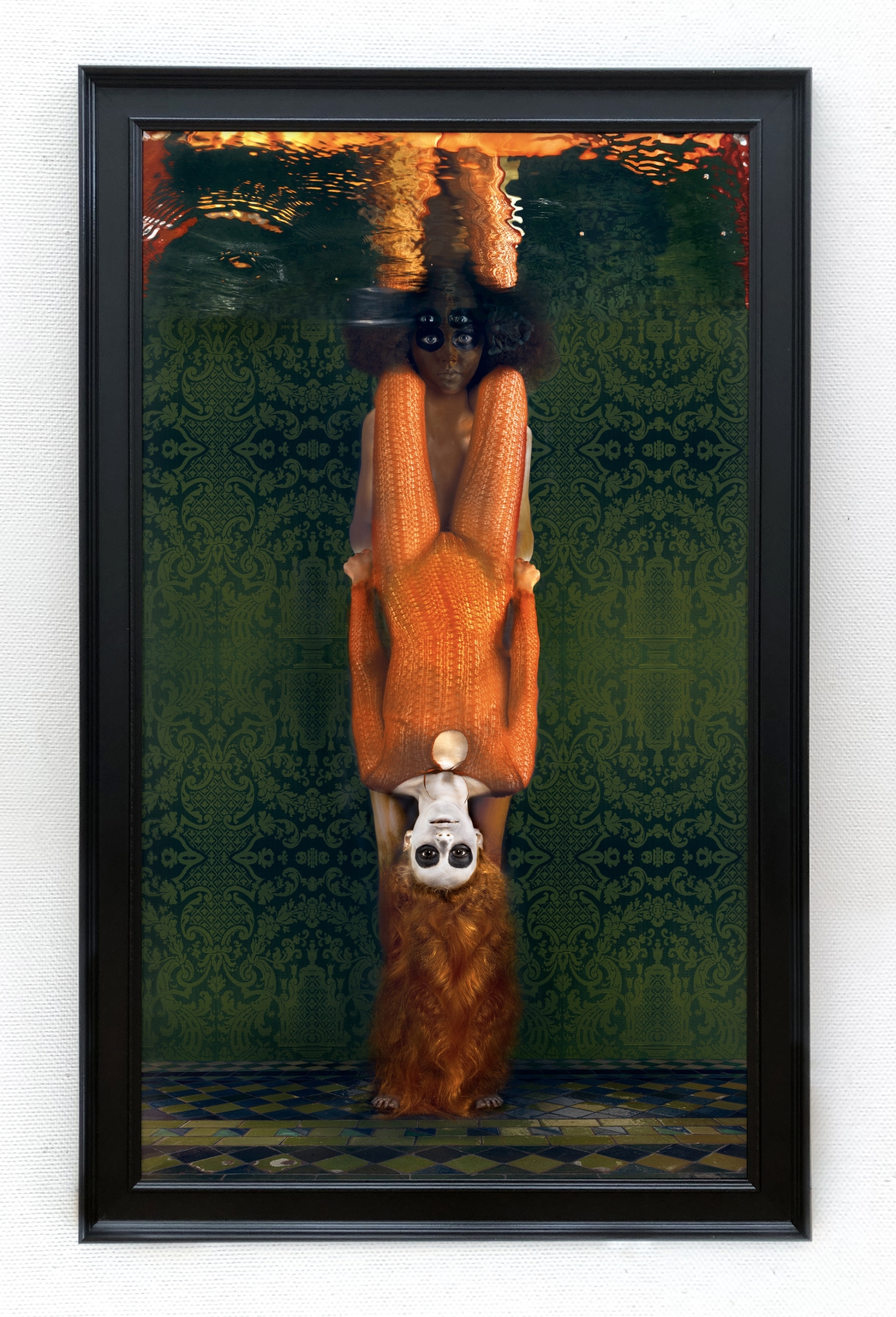 Dindi: ‘Met mijn surrealistische beelden neem ik de kijker mee langs een “innerlijke wandeling”; het gaat over identiteit en over maskers, maskers die mensen gebruiken om de ware identiteit bewust of onbewust te bedekken. Uit veiligheid of uit angst. Het water in mijn werk weerspiegelt de schijnwerkelijkheid en de kijker kan meegenomen worden op een reis door zijn eigen illusionaire wereld, zoals valse identiteiten, beperkte overtuigingen of geloofssystemen.