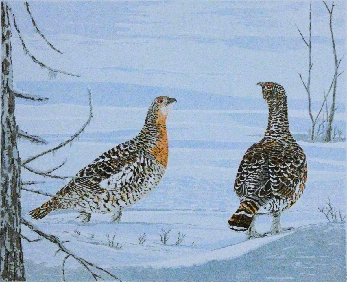 Litho, 8-kleurendruk, 'Schots sneeuwhoen'.