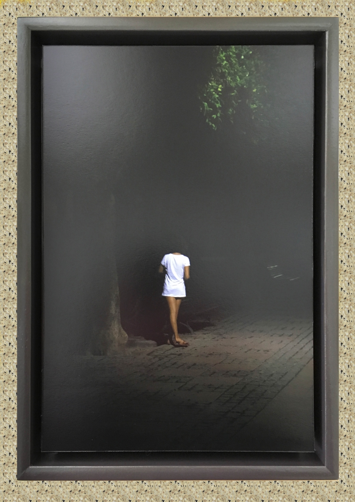 Fine art print in donkerbruin houten baklijst.