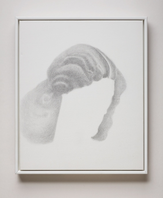 Deze tekening komt uit een serie van 6 werken gebaseerd op het kapsel van de pre-Raphaëlitische muze Jane Morris. Getekend met aquarelpotlood op Chinees papier dat op een katoenen schildersdoek van 50 x 60 cm is verlijmd. In een witte baklijst. Gemaakt voor een groepstentoonstelling in de Orangerie, Amsterdam in 2009. In 2010 geëxposeerd tijdens een groepstentoonstelling in de KunstKerk, Amsterdam en een solo expositie 'Reflections on Jane Morris' in Galerie de KunstSuper, Rotterdam. Tijdens een duotentoonstelling in 2019 liet ik 5 werken uit deze serie zien in Galerie de Molen, Wassenaar.