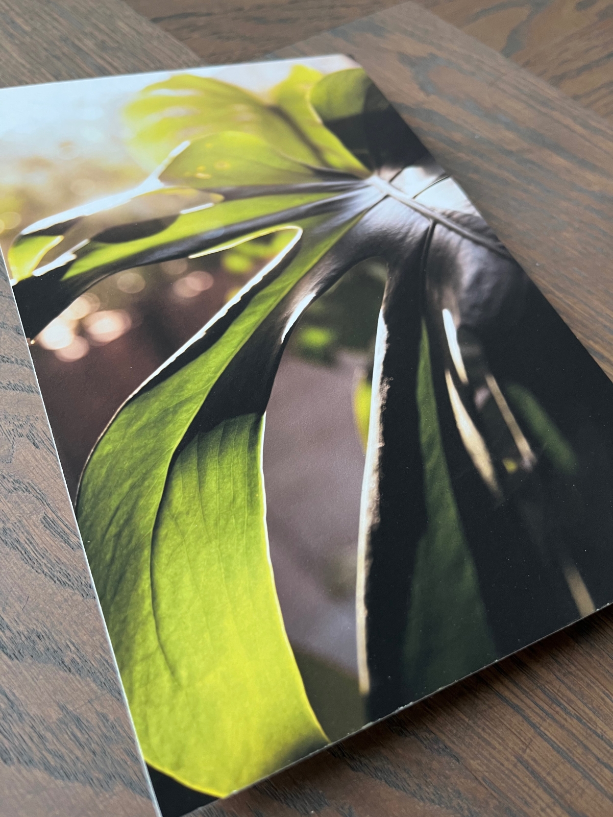 Caress of the Sun vangt een poëtisch moment waarin het zonlicht het blad van een Monstera zacht beroert. Het spel van licht en schaduw laat de organische vormen en texturen subtiel tot leven komen. Geprint op duurzaam Hahnemühle Bamboo papier* en bevestigd op dibond, straalt dit werk een ingetogen elegantie en warme verfijning uit. Elk exemplaar is handgesigneerd en geleverd met een Hahnemühle echtheidscertificaat.