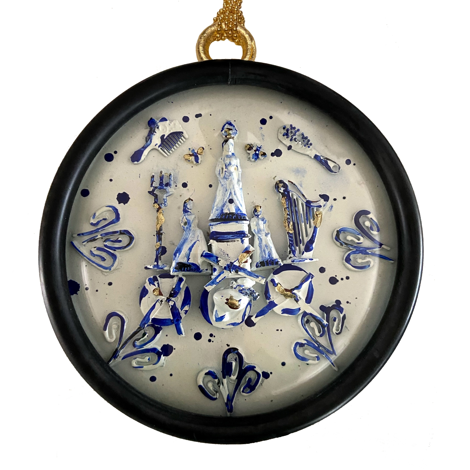 Een uniek 3D verhaal achter half bol glas. Dit medaillon heeft een rubberen frame, metalen ophang ring en balletjes ketting.