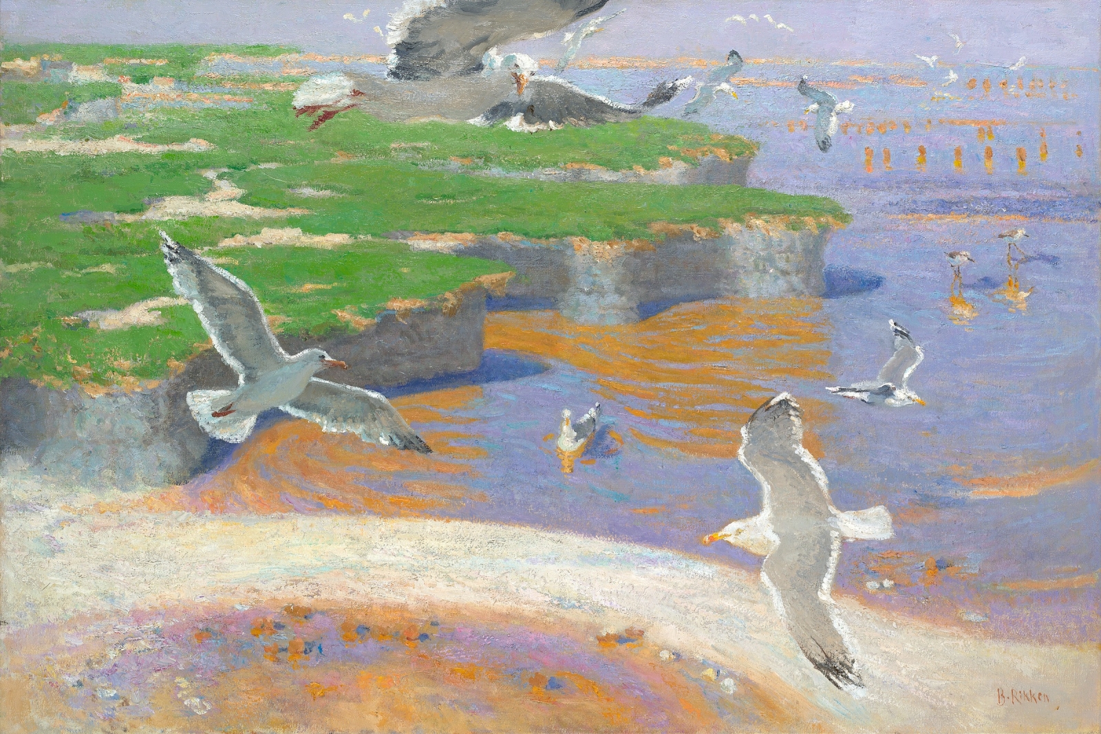Tussen Wierum en Paessens Moddergat ligt een schitterend buitendijks land. Door erosie zijn er stukken land afgeslagen, en vormen een soort kleine kliffen. Het wad heeft er verschillende stemmingen en kleur, van ijskoud in de winter tot vriendelijk in de zomer, en dat alles druk bezet met de meest verschillende waddenvogels. Geprut van zeepieren en krijsende vogels op zoek naar prooi larderen de scene. Zilvermeeuwen dwarrelen door de compositie.