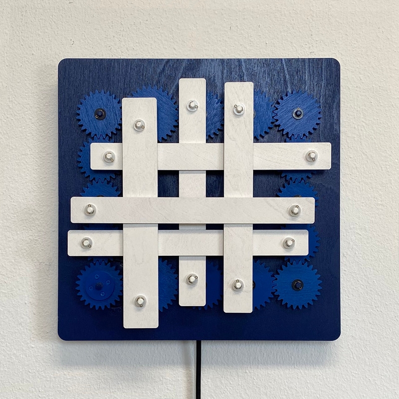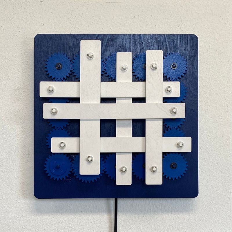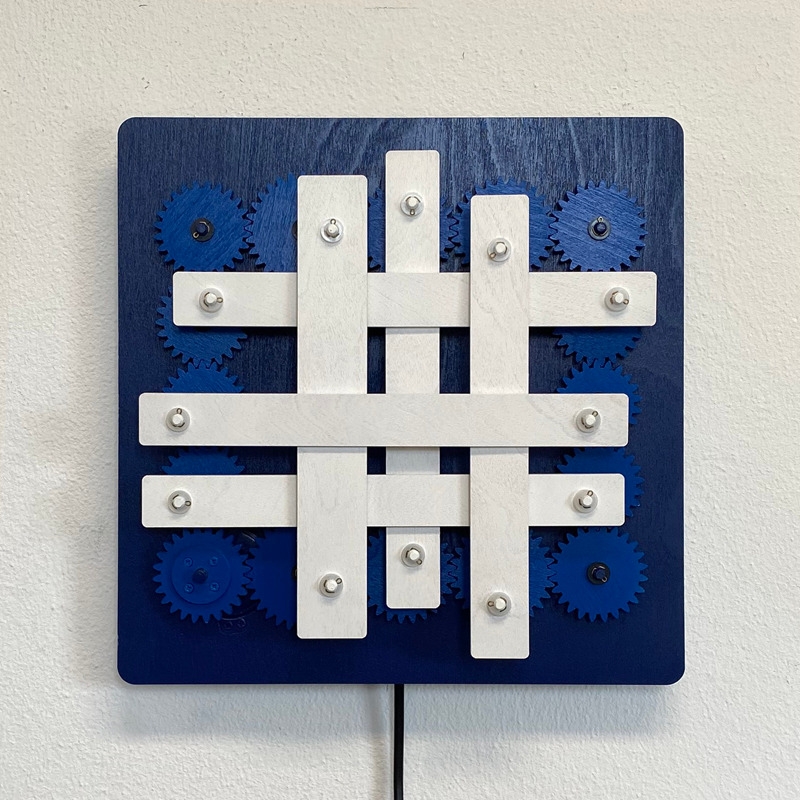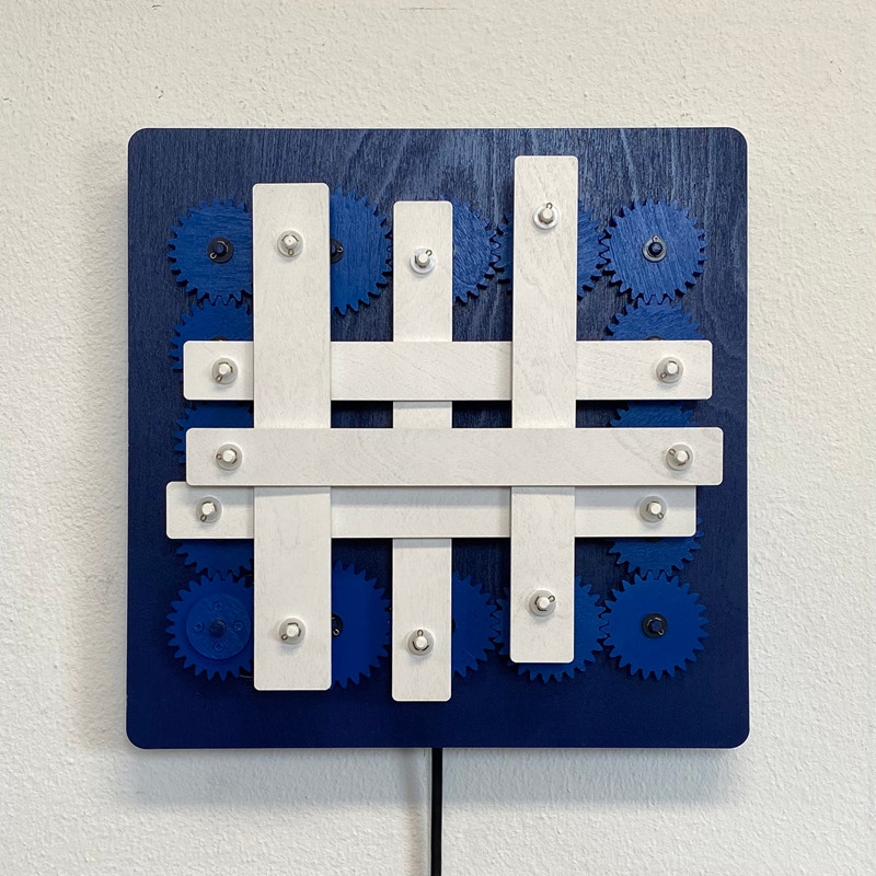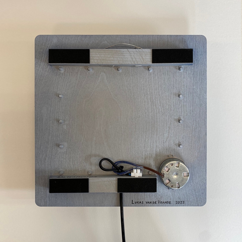 Kinetisch object van hout. De strepen vormen steeds een nieuw patroon als er aan het de motor aangezet wordt. Het duurt ongeveer 6 jaar voordat dezelfde compositie te zien is als de motor non-stop aangezet zou worden.