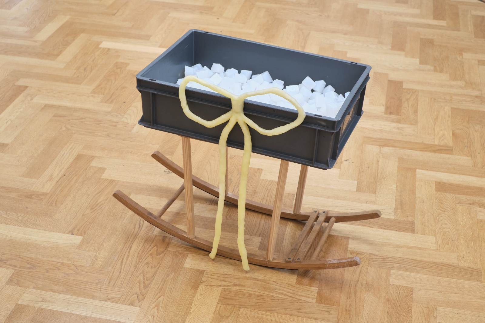 Materiaal: hout, krat, was, siliconen.