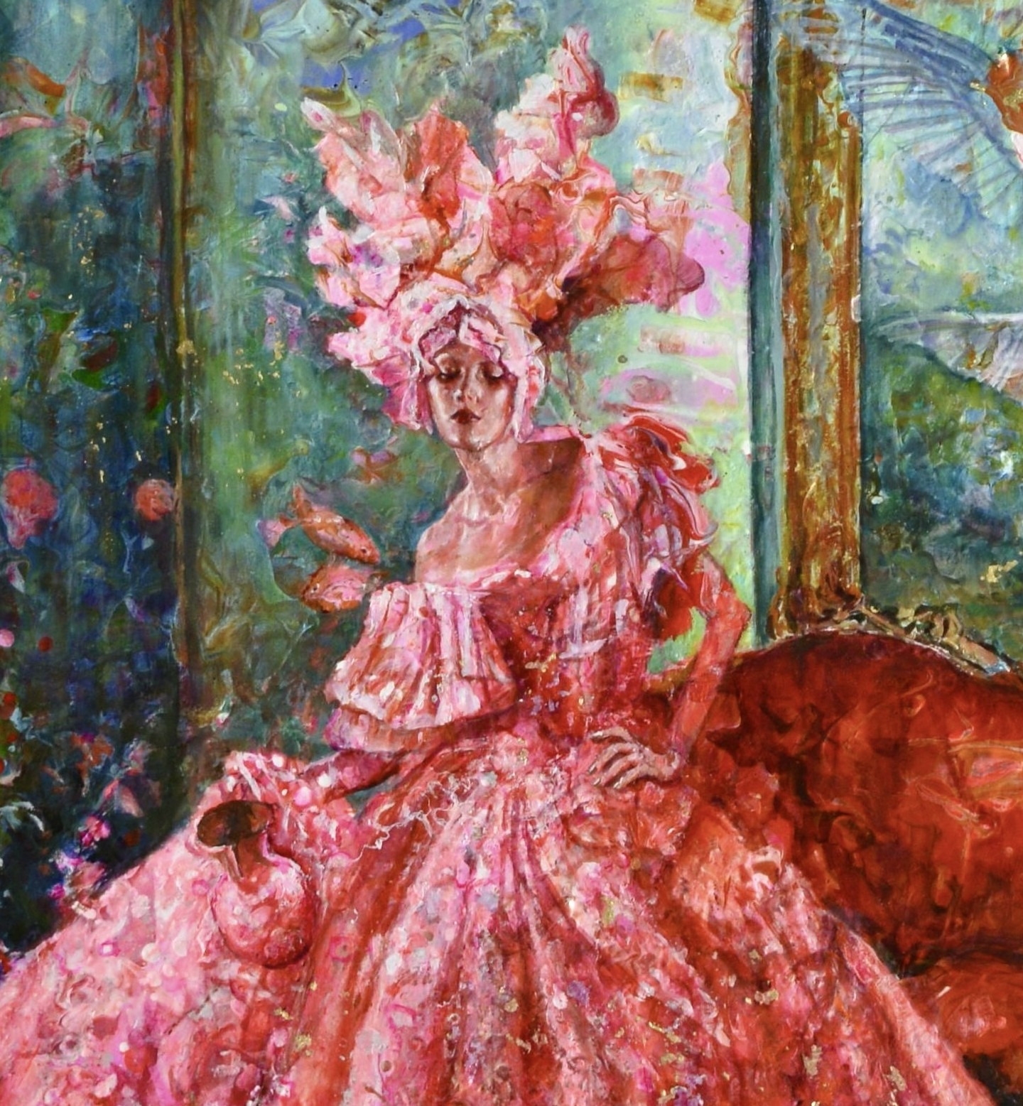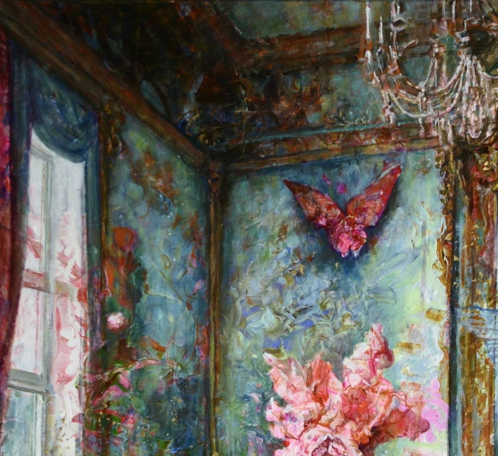 Lavinia’s Kamer — 100 × 100 cm, mixed-media (olieverf over gegoten acryl), incl. lijst — €3800