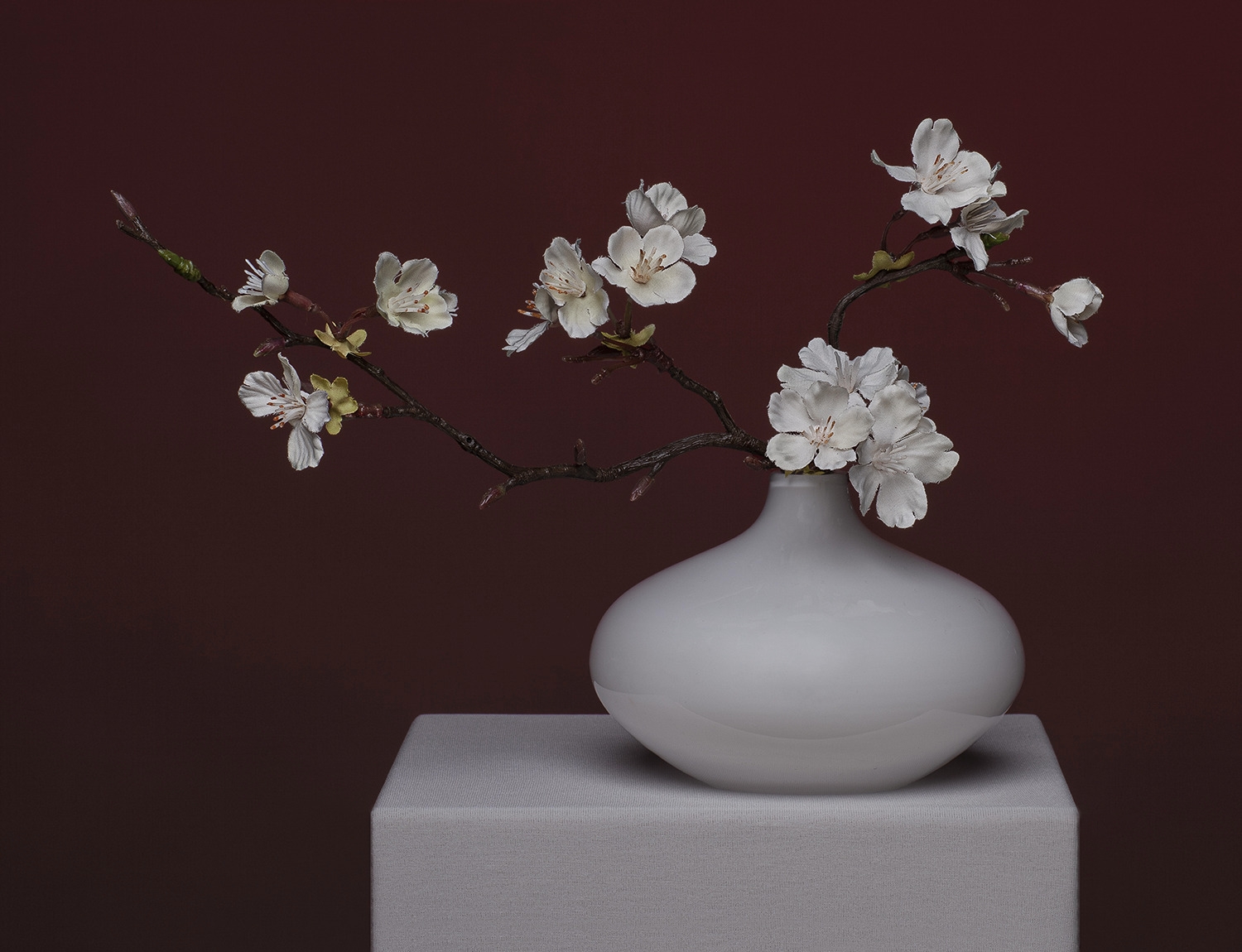 Bloemstilleven Ume-mi is onderdeel van Project Preserved, bestaande uit recreaties van stillevens uit verschillende stijlperiodes in de kunst. Alle materialen die ik in dit project gebruik zijn uitsluitend afkomstig uit kringloopwinkels.