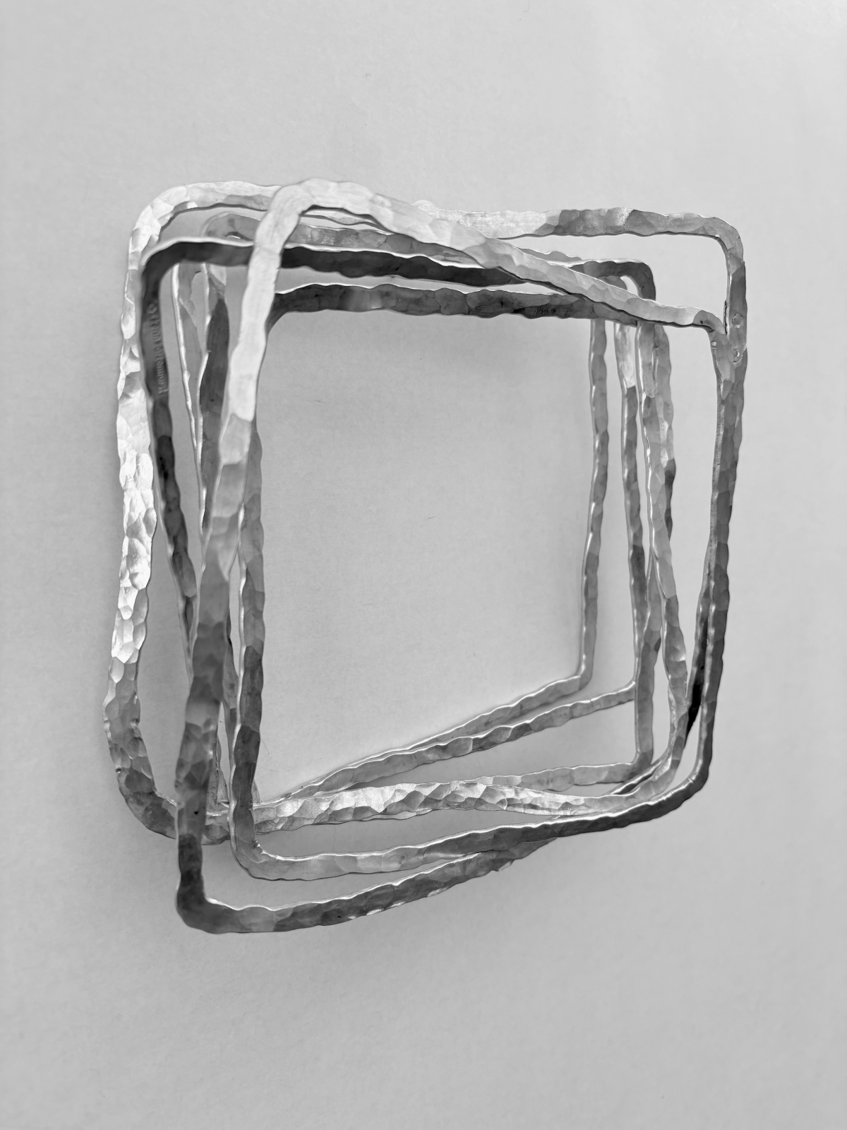 Venster 26#2, aluminium gewalst en gehamerd. Een doorlopende lijn.