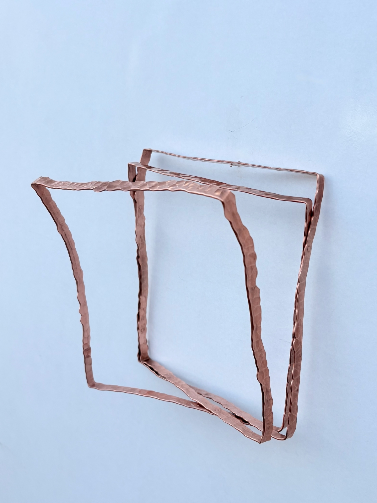 Metalen sculptuur voor aan de wand, bestaande uit één doorlopende lijn van gehamerd koper.