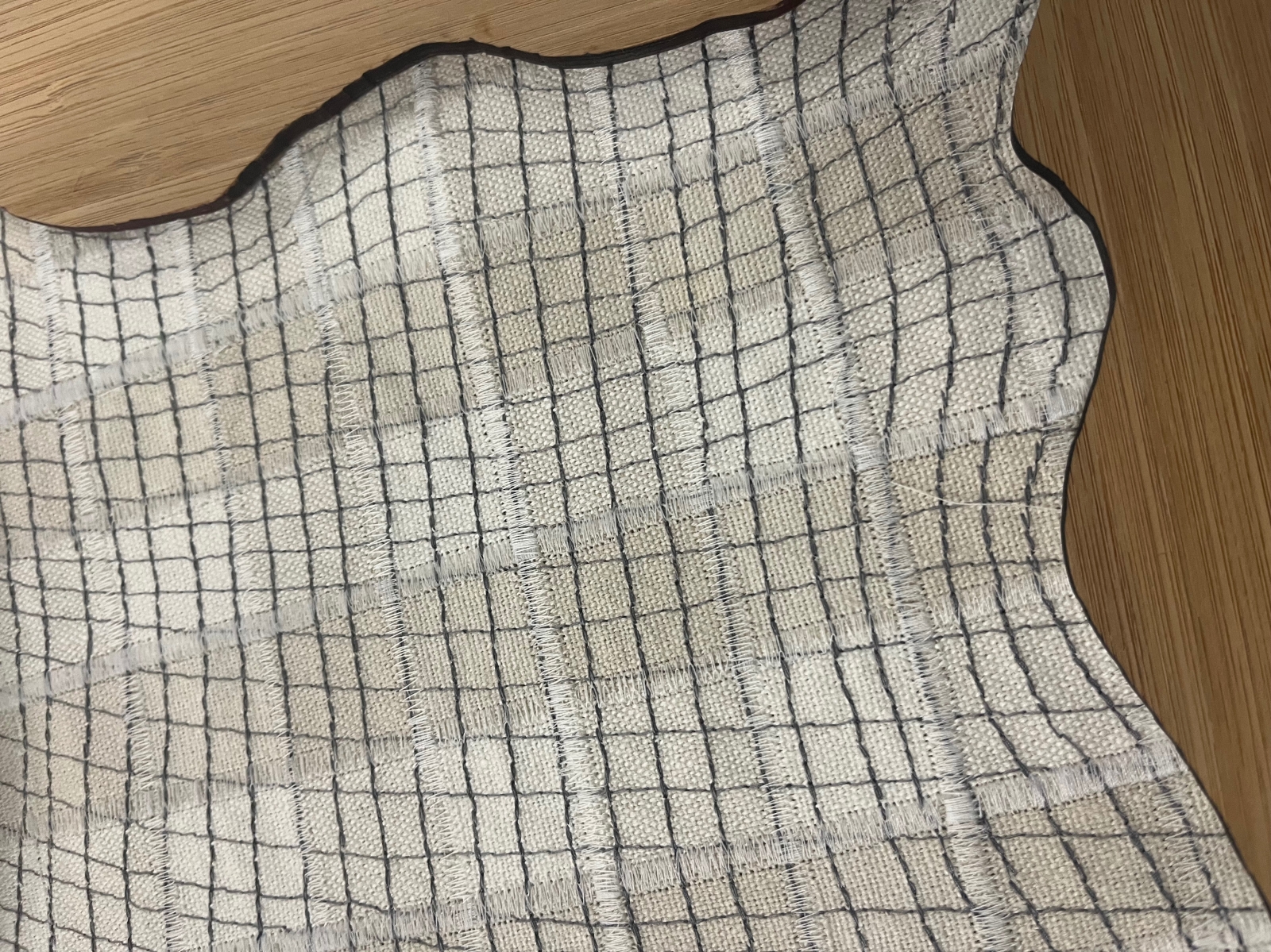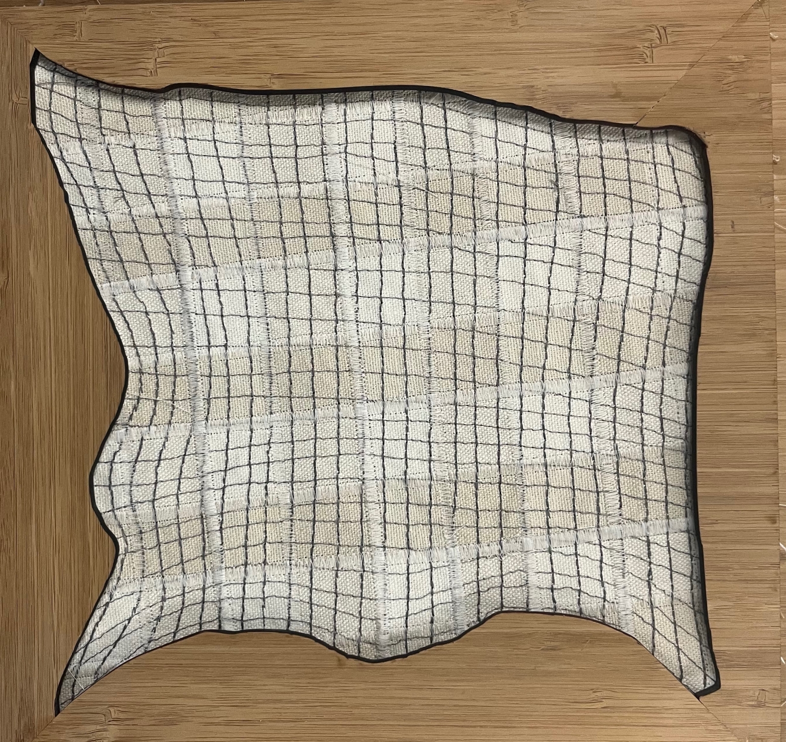 In this work I explore how existing structures — such as the classic grid pattern —can be transformed into a composition without hierarchy. By letting the grid ripple and layering it with stitch lines, intersections emerge where new connections become visible. No line or direction dominates: each element is part of a network of mutual dependence, where control and chance coexist.