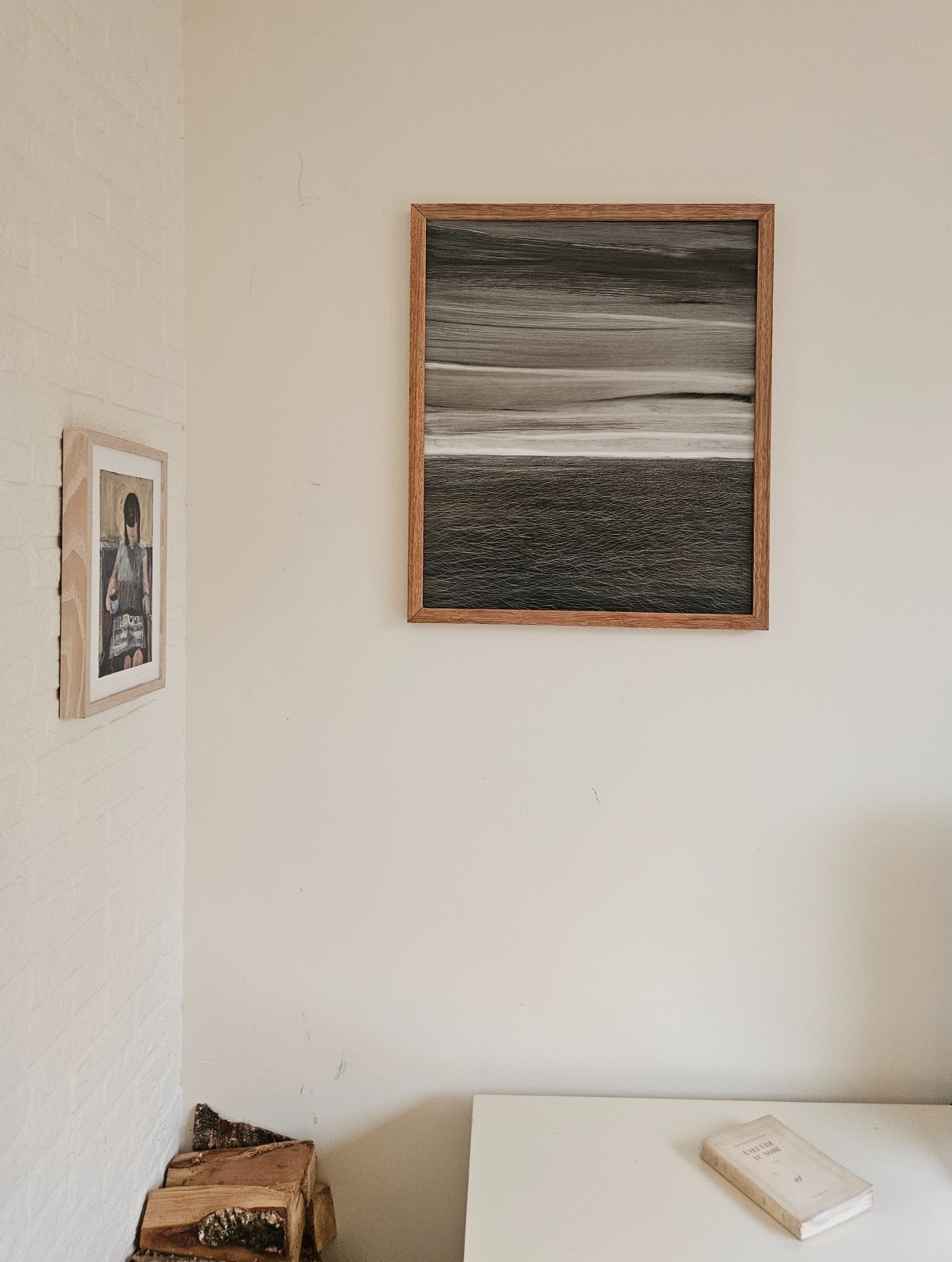 The work makes a discreet reference to Hiroshi Sugimoto’s seascapes, particularly in the clarity of the horizon and the reduction of the motif to its essential elements. As in Sugimoto’s photographs, the sea is not treated as a dramatic event but as a minimal structure dividing sky and water. At the same time, the scratched surface keeps the image tactile and unstable. The painting is less about depicting a specific place than about examining how depth, atmosphere and stillness can emerge through restraint and repetition.