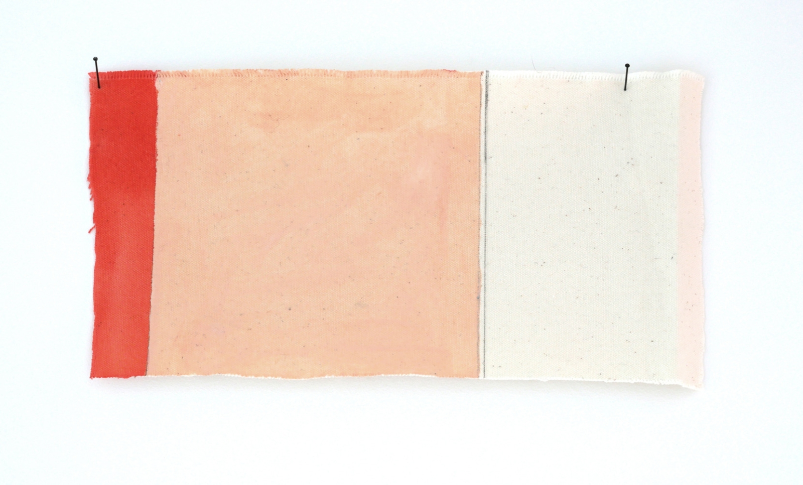 Dit kleine werkje maakt deel uit van een serie schilderwerkjes op restjes schildersdoek, gekregen van collega's; in dit geval is het een stevige kwaliteit ongebleekte katoen. Het minimalistische werkje is gevouwen langs aanwezige vouwlijnen, beschilderd met acrylverf en bewerkt met potlood.