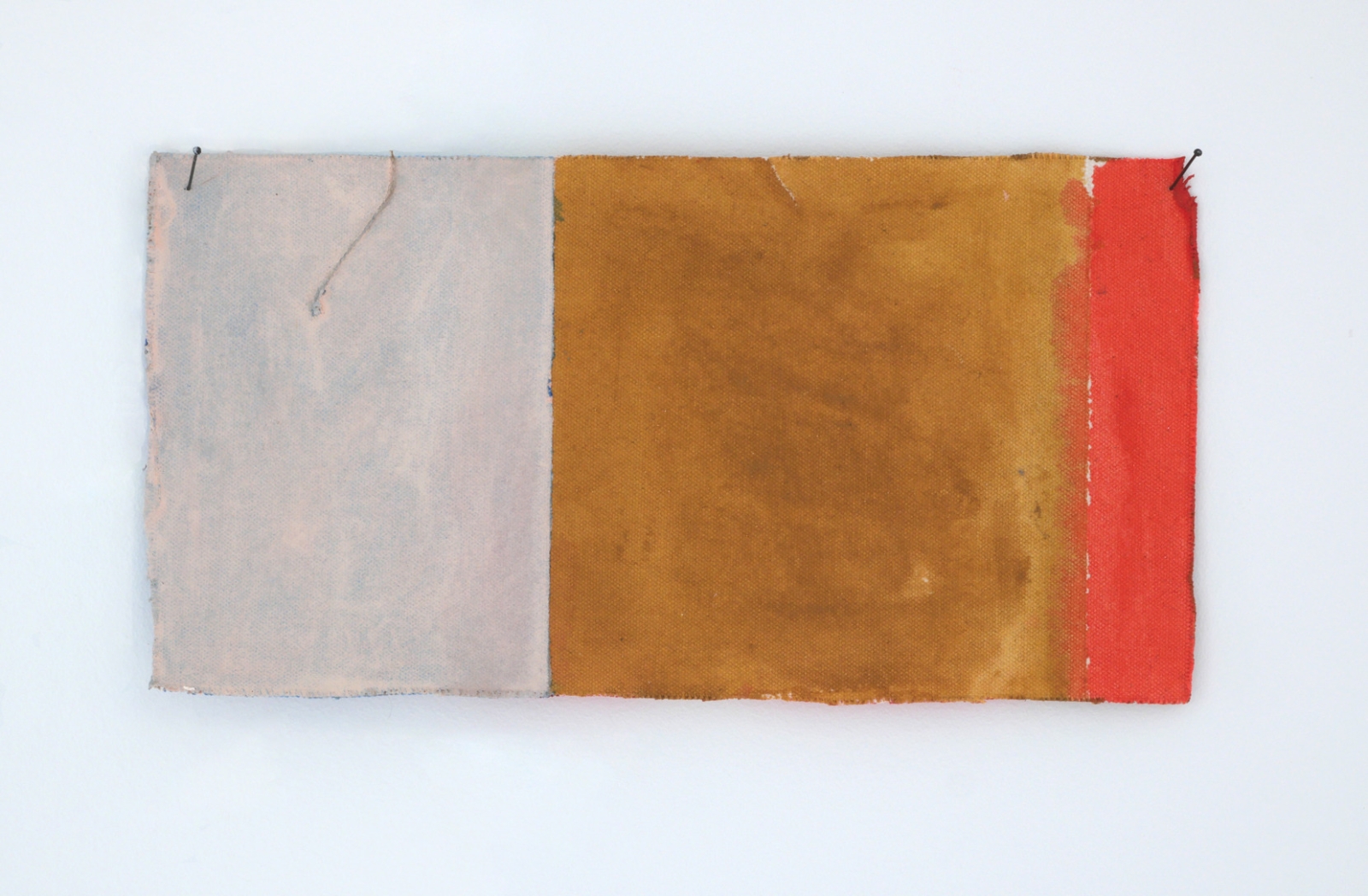 Dit kleine werkje maakt deel uit van een serie schilderwerkjes op restjes schildersdoek, gekregen van collega's; in dit geval is het een stevige kwaliteit ongebleekte katoen. Het minimalistische werkje is beschilderd met acrylverf.