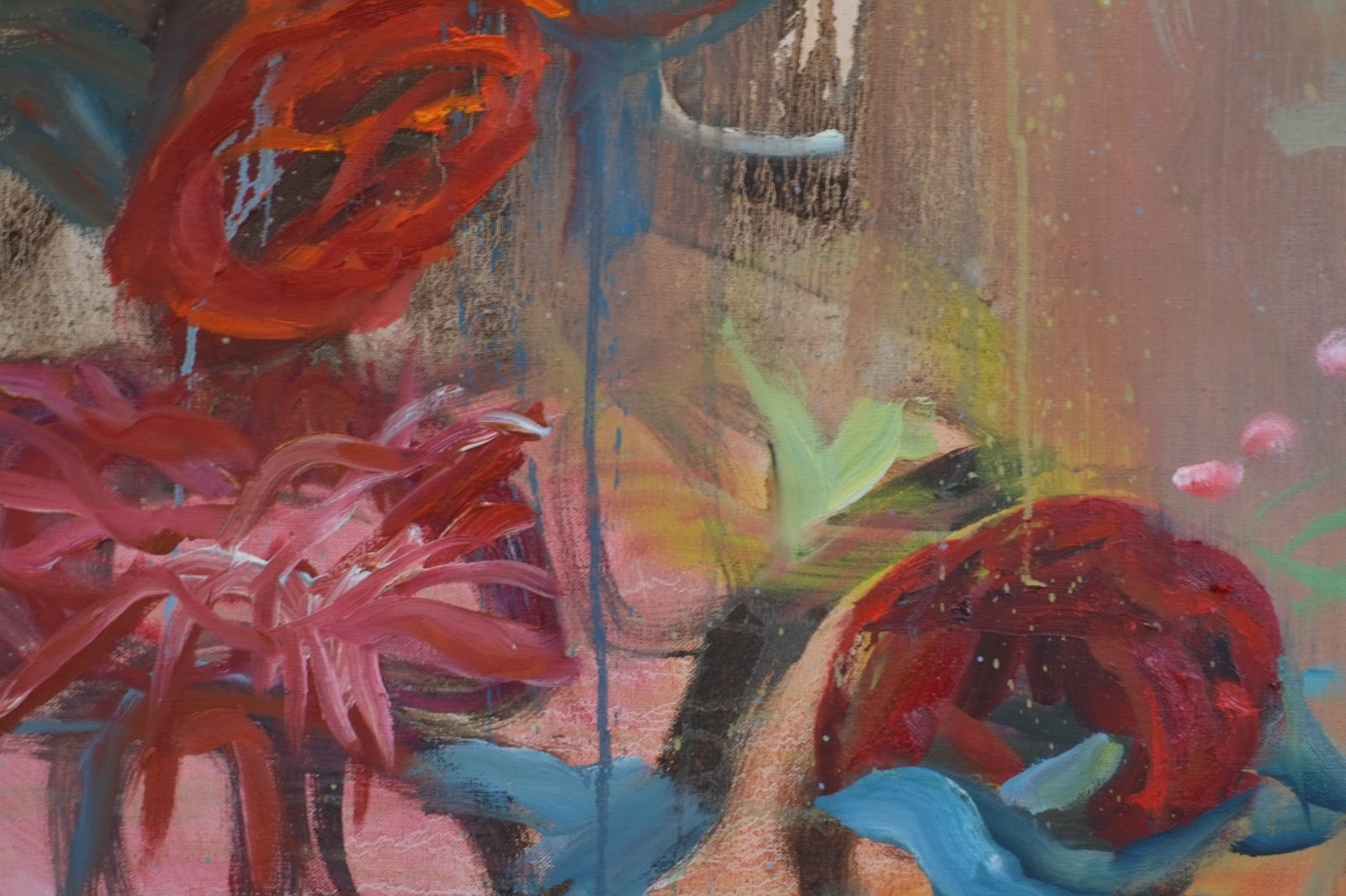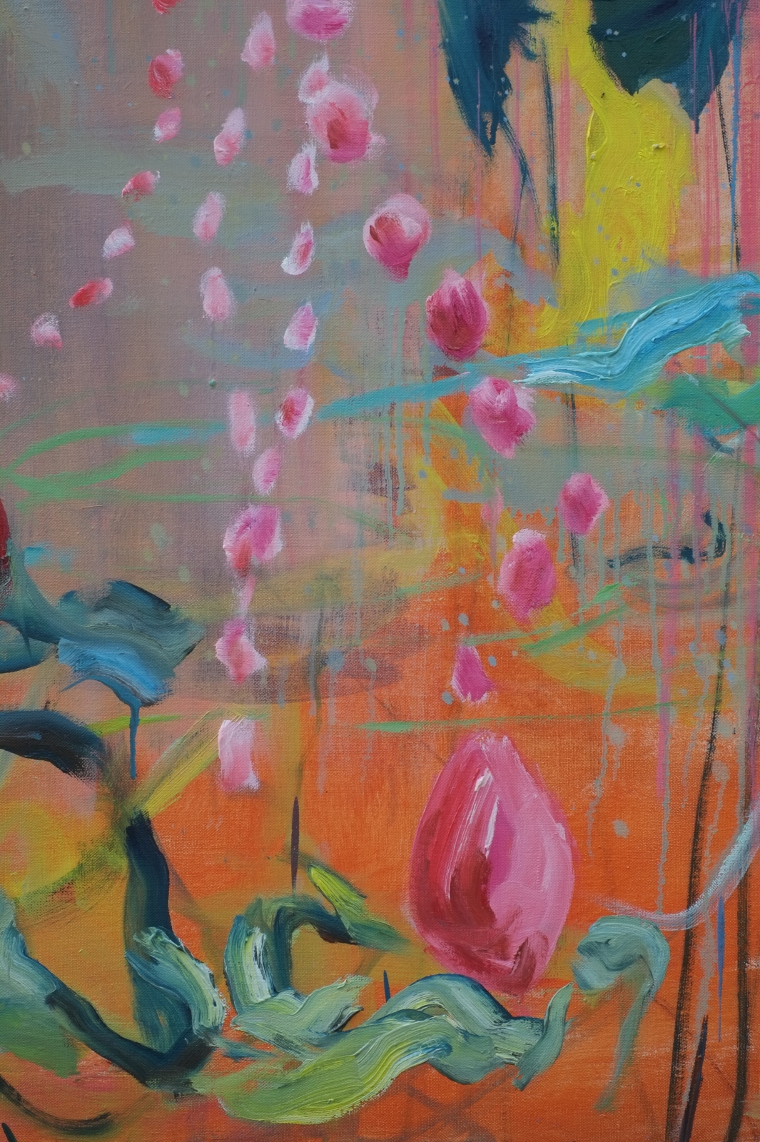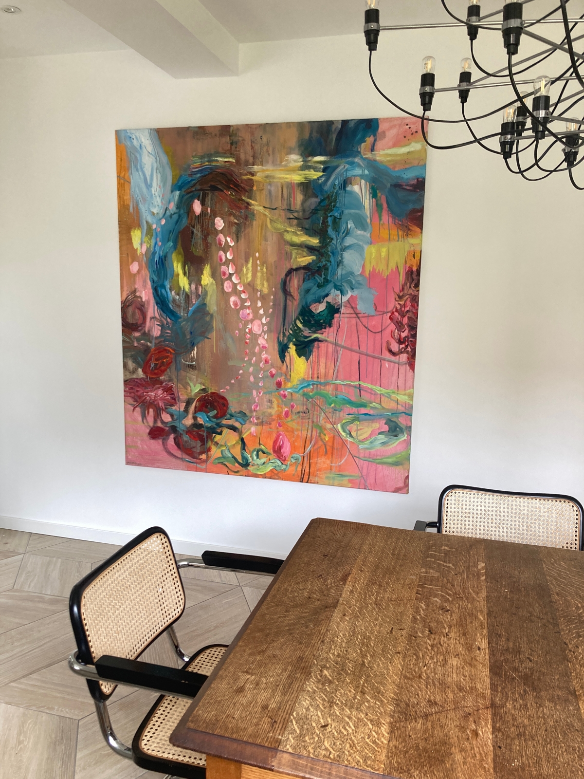 Dit opvallende originele olieverfschilderij op canvas, getiteld "Mrt.25", nodigt uit tot een wereld van organische vormen en vermengde richtingen. De kunstenaar combineert meesterlijk kleuren en texturen en creëert een dynamisch samenspel dat een reeks associaties kan oproepen, van de warmte van vuur tot de delicate schoonheid van bloemen, of zelfs de aangrijpende beelden van tranen. Dit stuk legt de essentie vast van onze menselijke ervaring, de constante stroom en de anticipatie op wat komen gaat, terwijl het leven in talloze richtingen beweegt.
